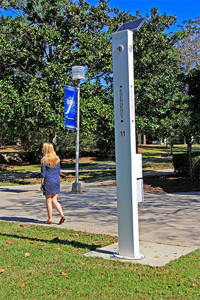 Blue Lights are freestanding emergency boxes that notify campus police of an emergency and your location.