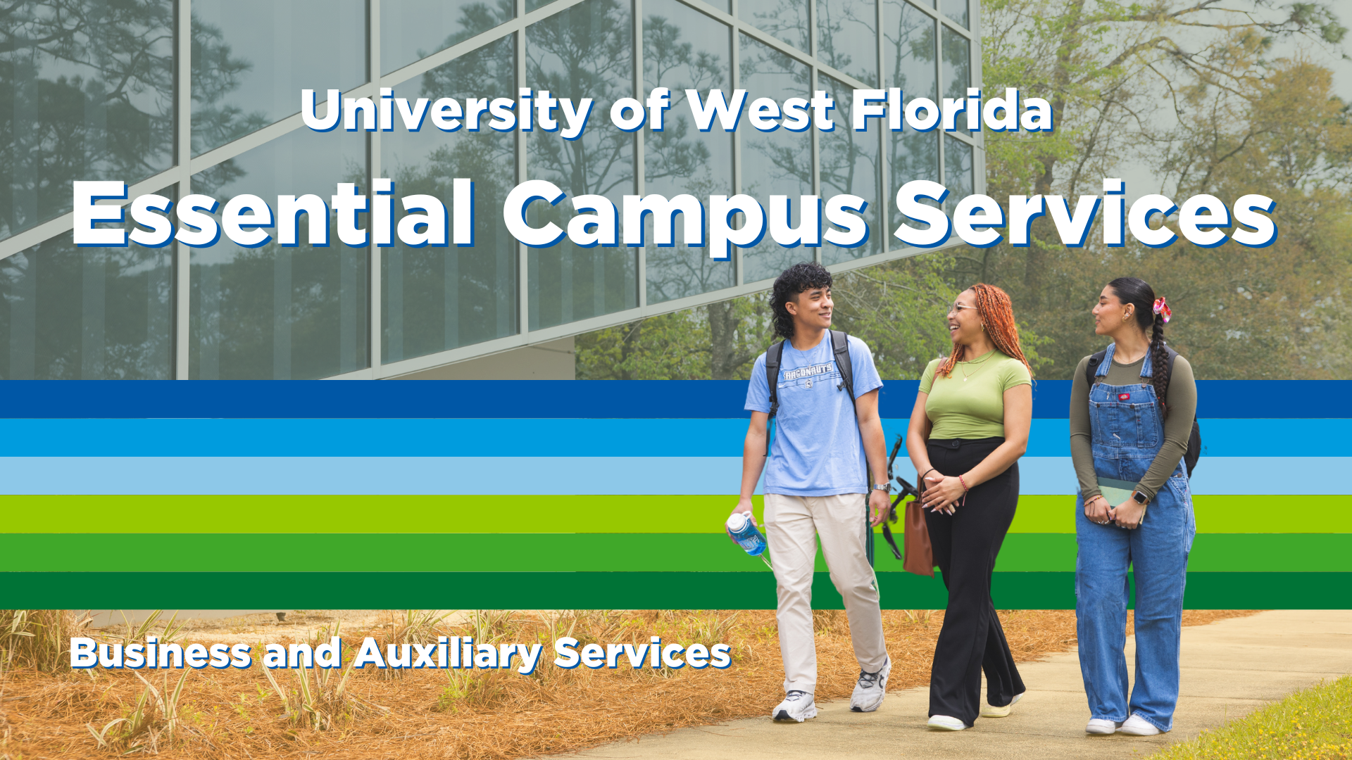 Business and Auxiliary Services, sometimes known as Campus Services, offers a variety of resources and services you will encounter or may need during your time at UWF.