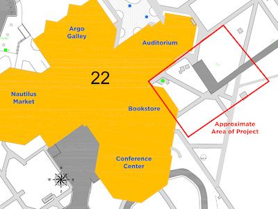 Beginning Monday, August 18, contractors will be repairing concrete around the north entrance to Building 22, the Commons main entrance (see map below). The area will have a temporary ADA ramp while the work is being completed. The project should take a week to complete. Contact: faclities@uwf.edu